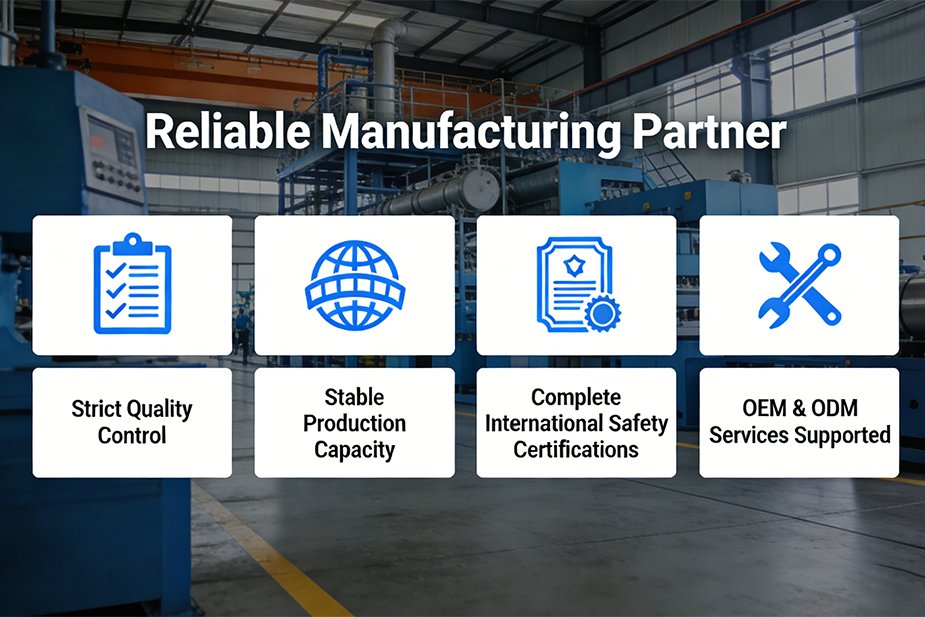 We have strict quality control, stable production capacity and complete international safety certifications. OEM & ODM services are supported to meet different market demands.